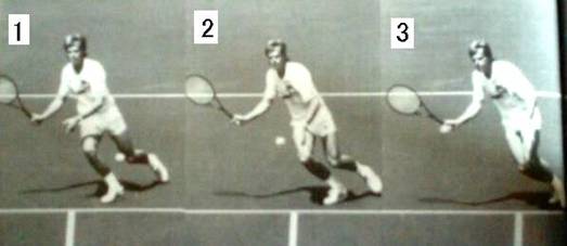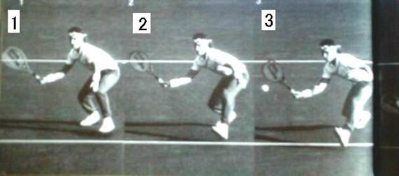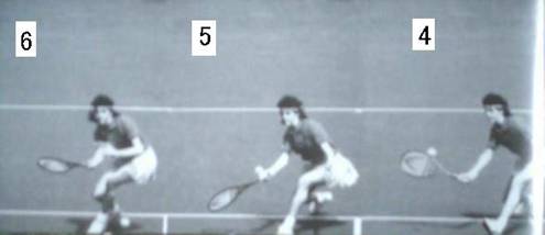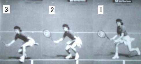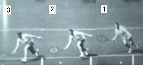 以下二人の女性もラケットの位置、前移動等基本に忠実で、下のサーブ&ボレーの名手エドバーグ選手と変わらない。 肩は横を向きラケットは常に顔の